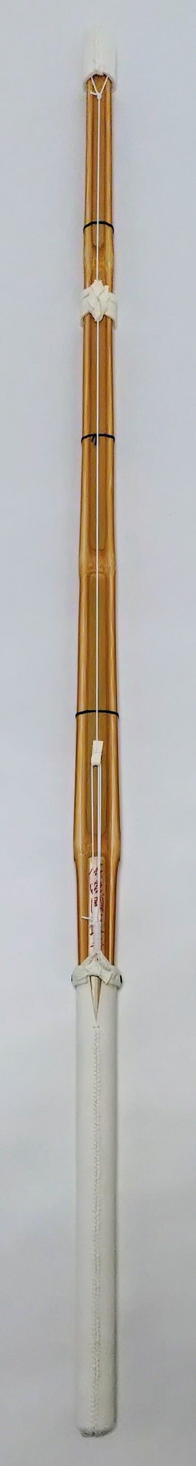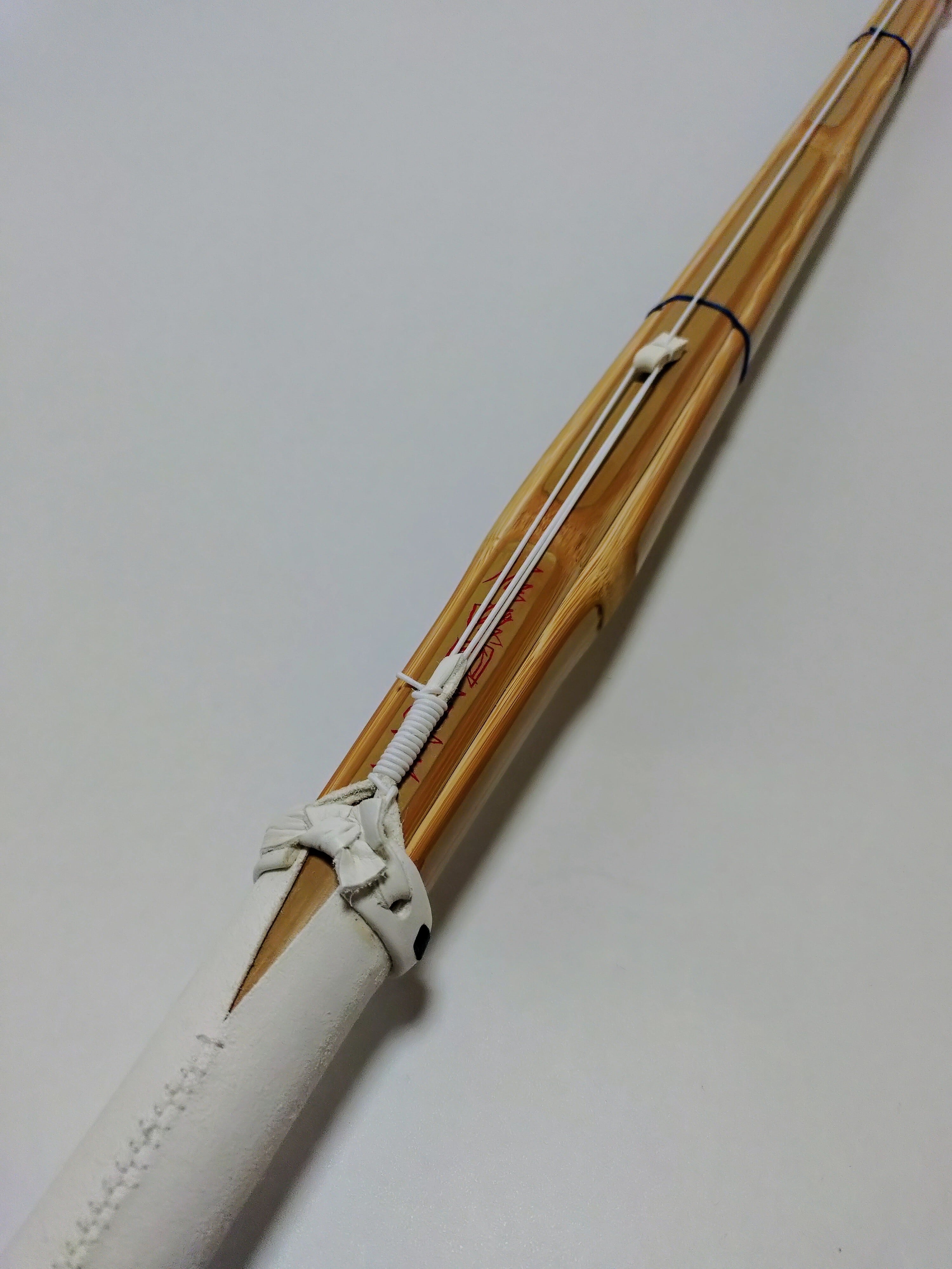 ・竹どうしの合わせ面に接着剤やロウなどの潤滑剤は塗布せず、竹刀の表面(表皮以外)をサメ皮で磨き、椿油だけを表面全体にひと拭きして仕上げています。(竹がしなると竹どうしが擦れ合うため、軋み音が出る場合があります。)